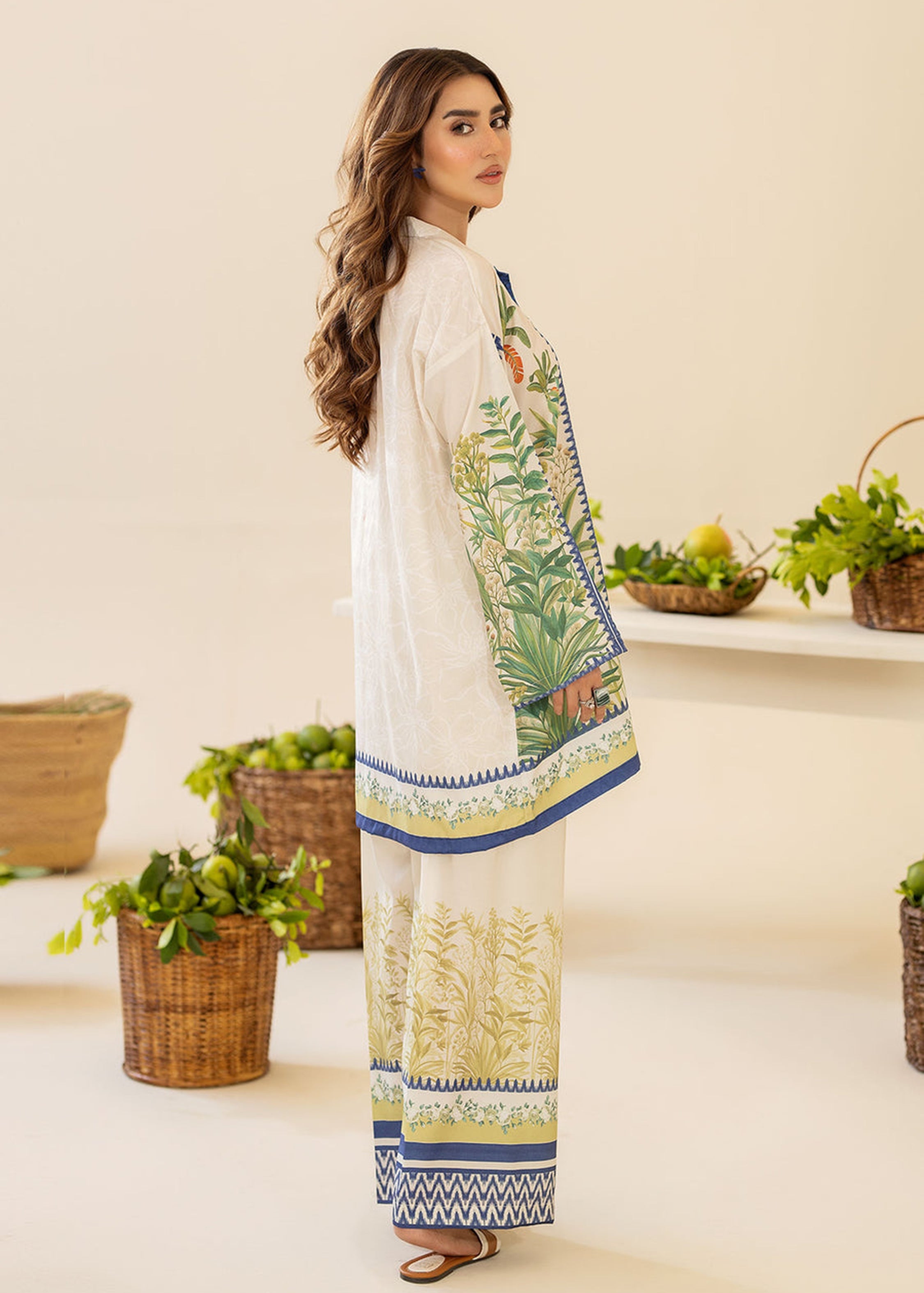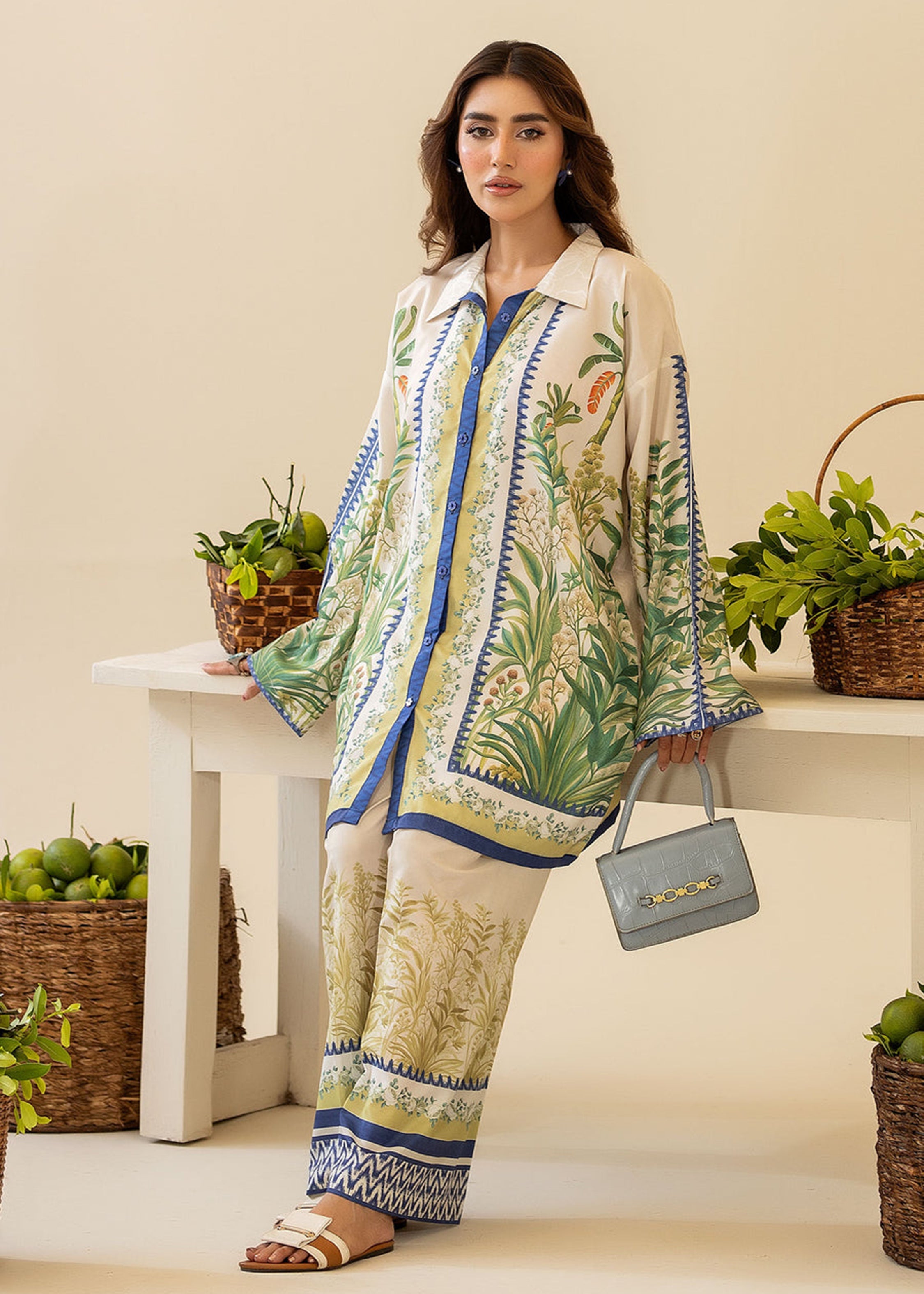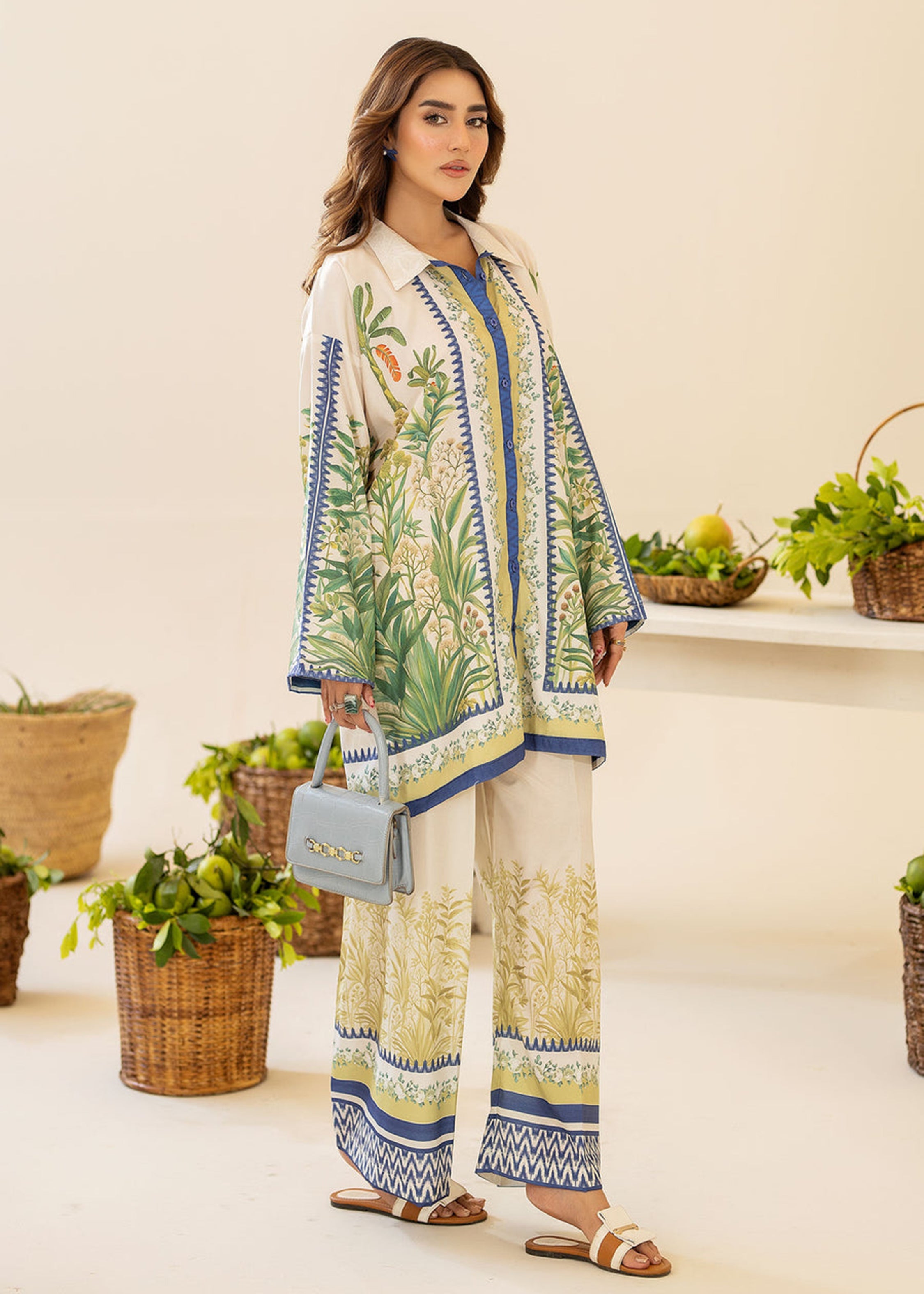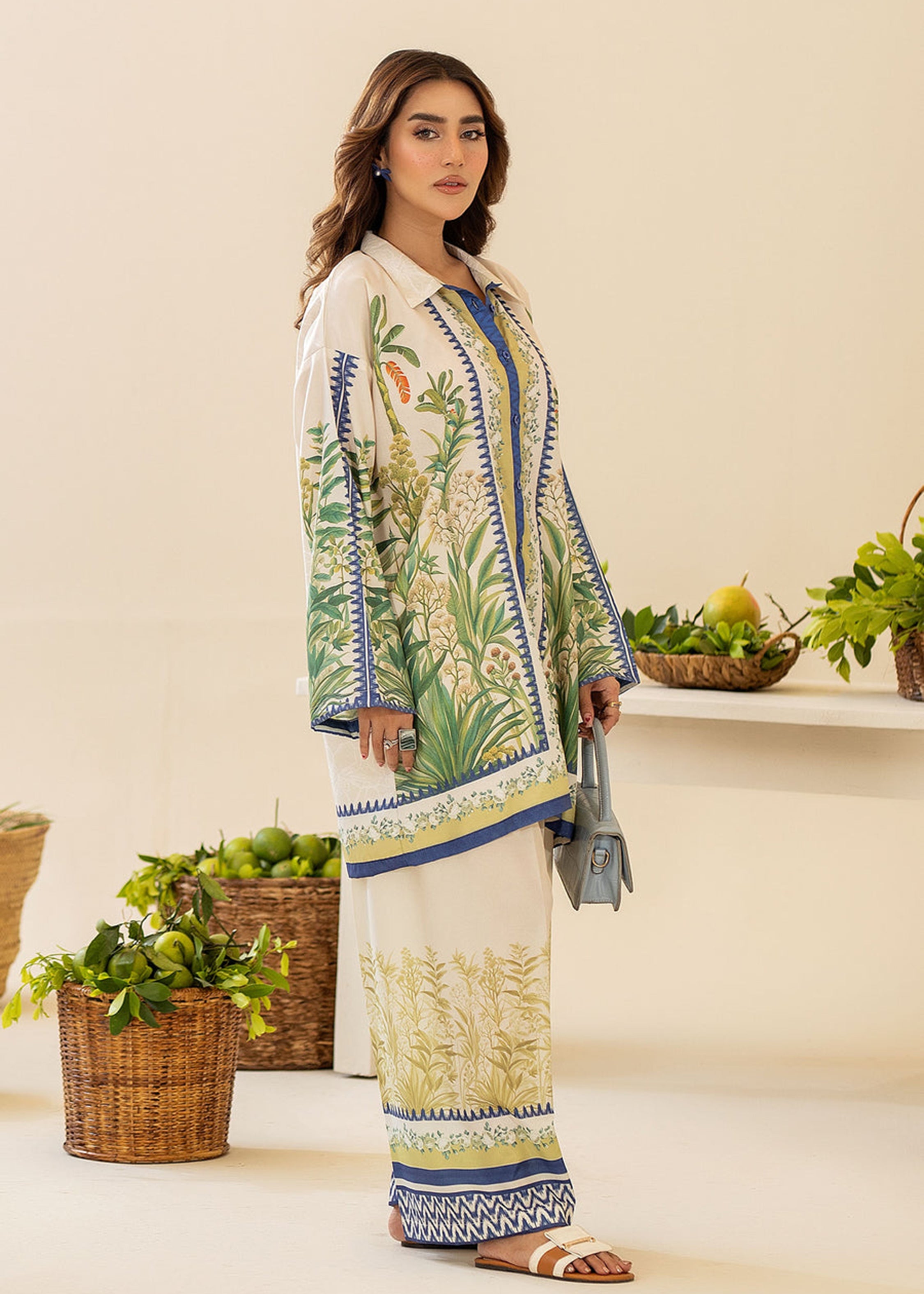 Refresh your wardrobe with this breezy and elegant co-ord set from ByS. Featuring a digitally printed oversized shirt with lush...