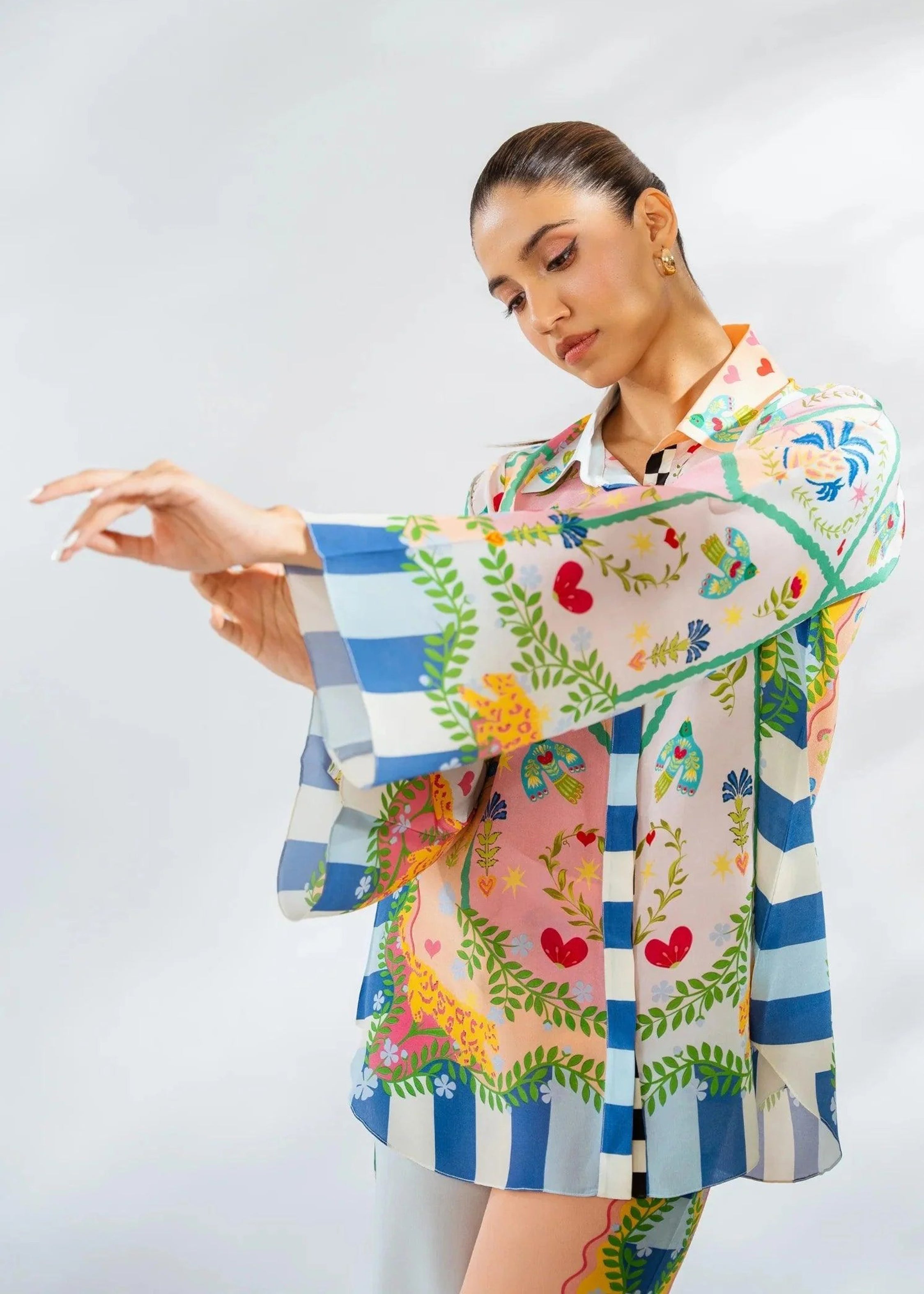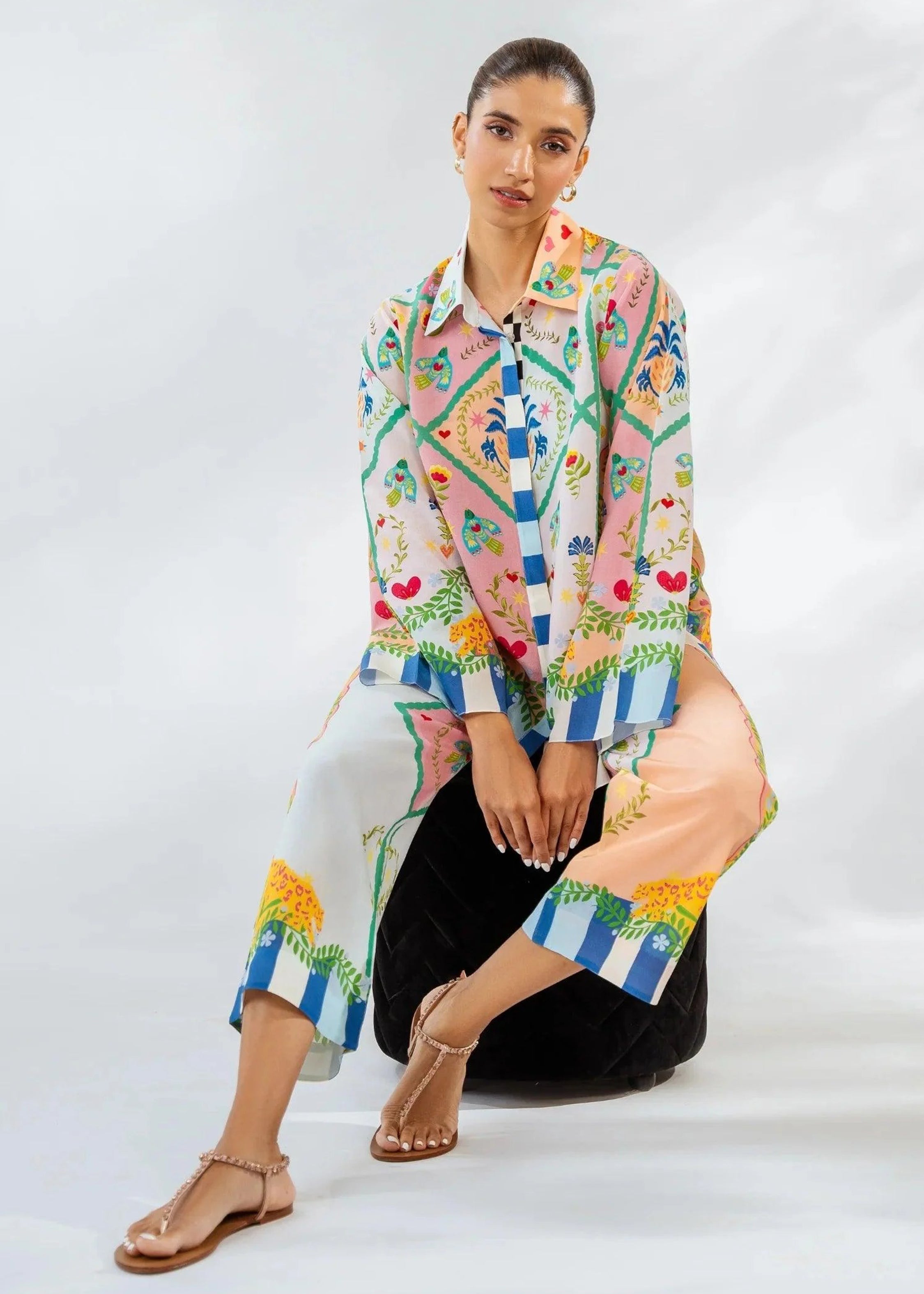 Channel your inner artist with this bold and joyful Carnival Garden Co-Ord Set. Adorned with a whimsical fusion of floral,...