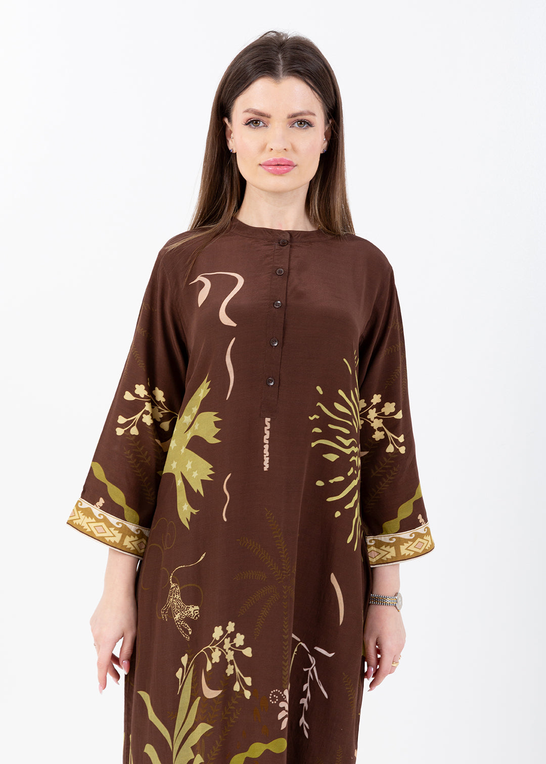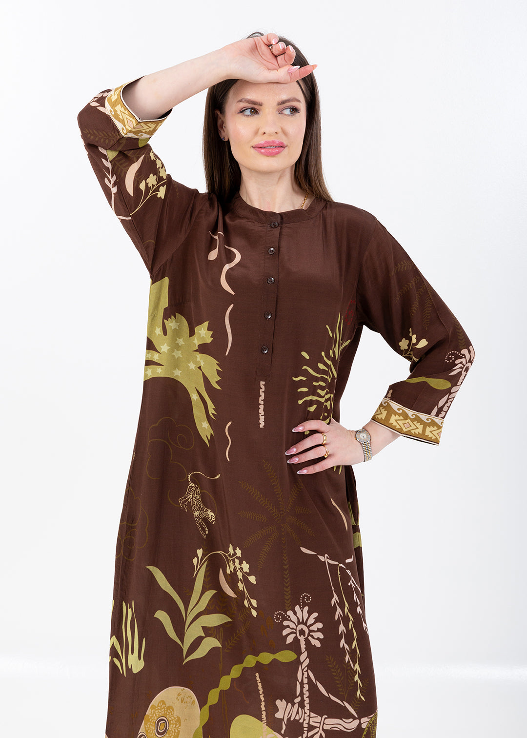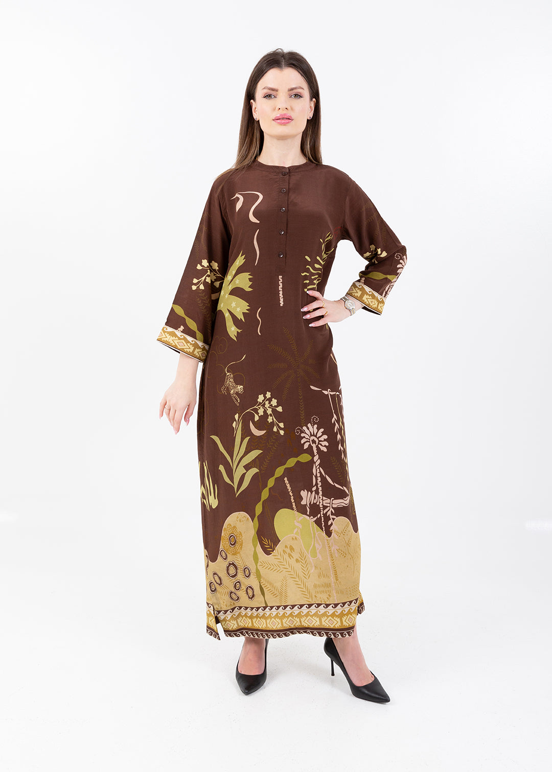 Product Description Discover effortless elegance with our Nooré Brown Kaftan Set, crafted in luxurious Cupro Satin that offers a soft, fluid drape...