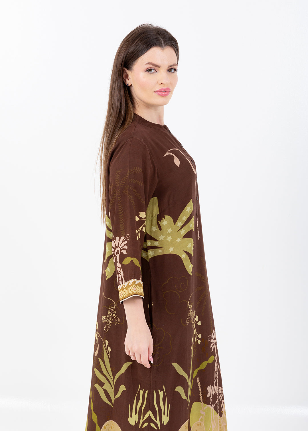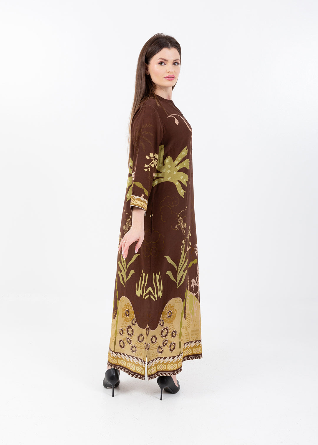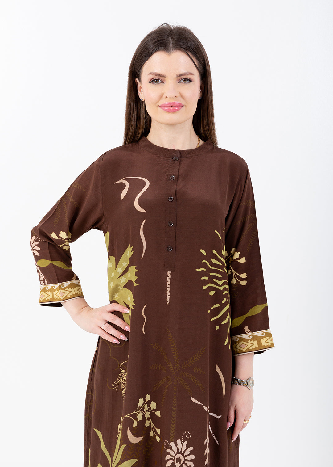 Product Description Discover effortless elegance with our Nooré Brown Kaftan Set, crafted in luxurious Cupro Satin that offers a soft, fluid drape...