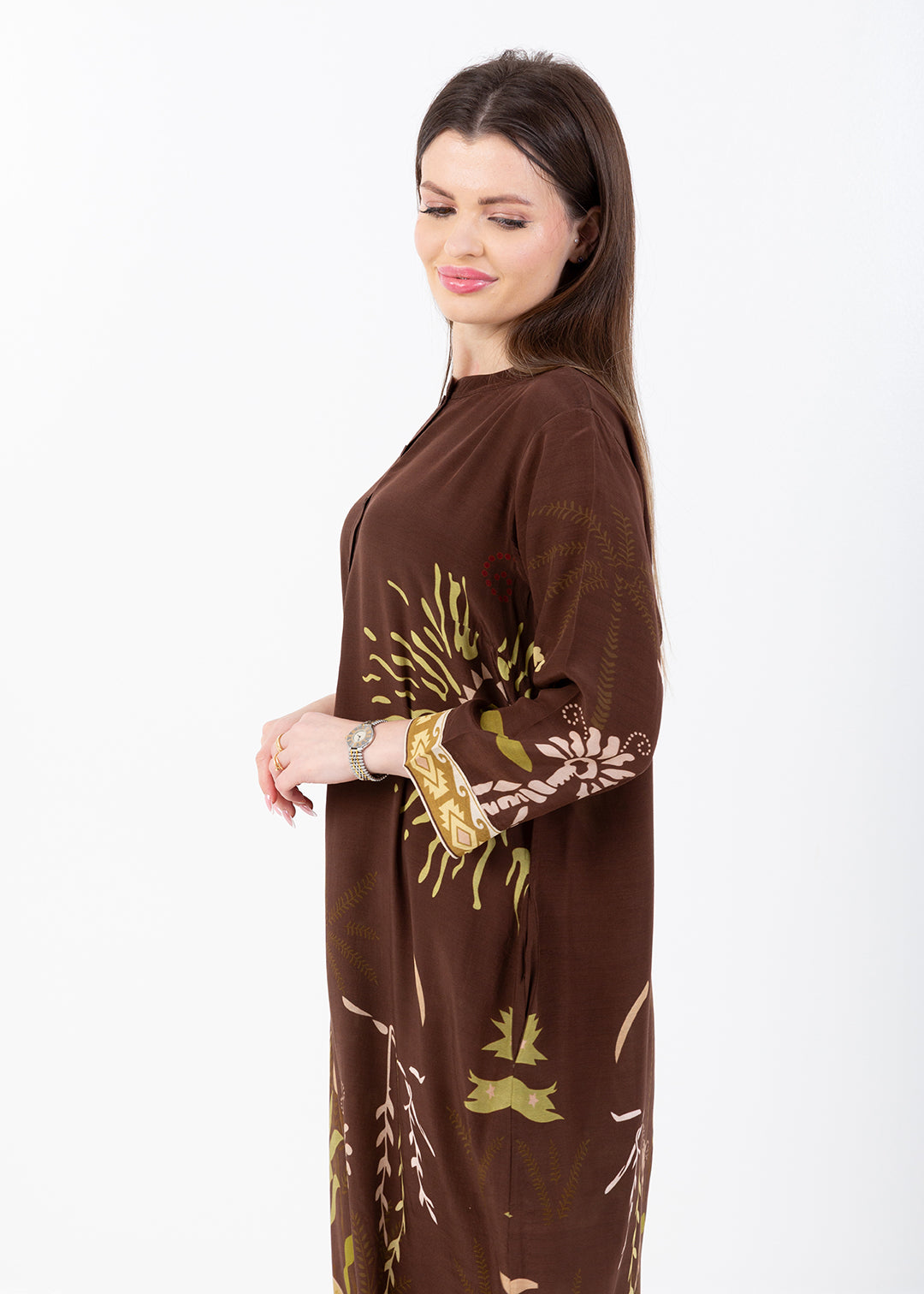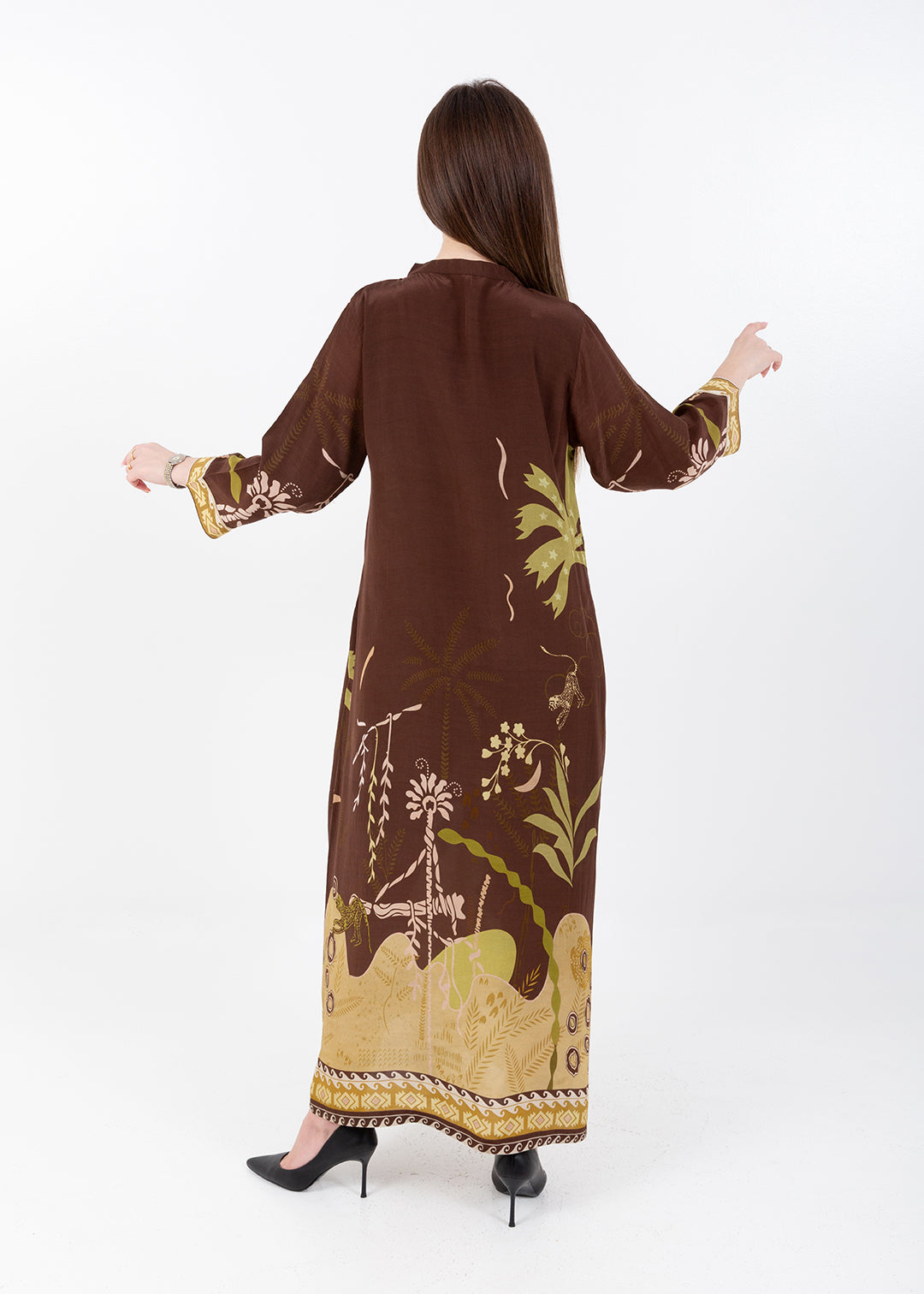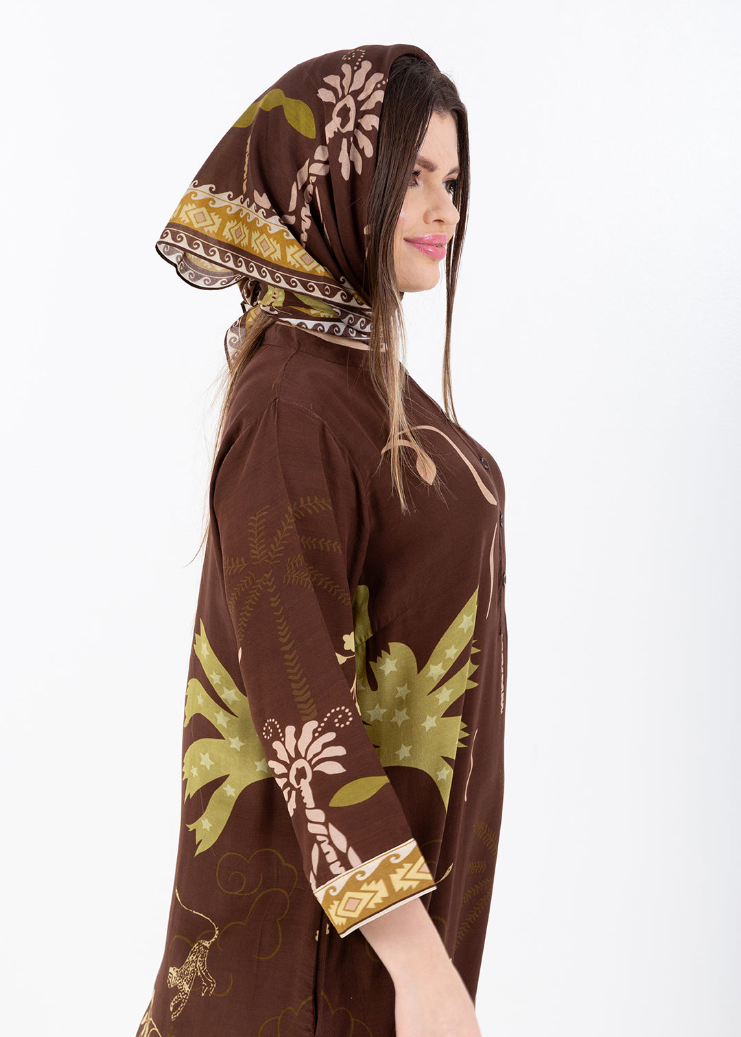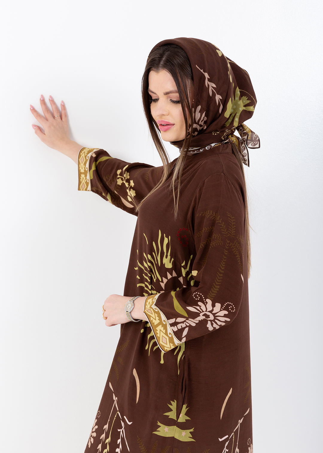 Nooré Brown Cupro Satin Kaftan Set with Matching Scarf