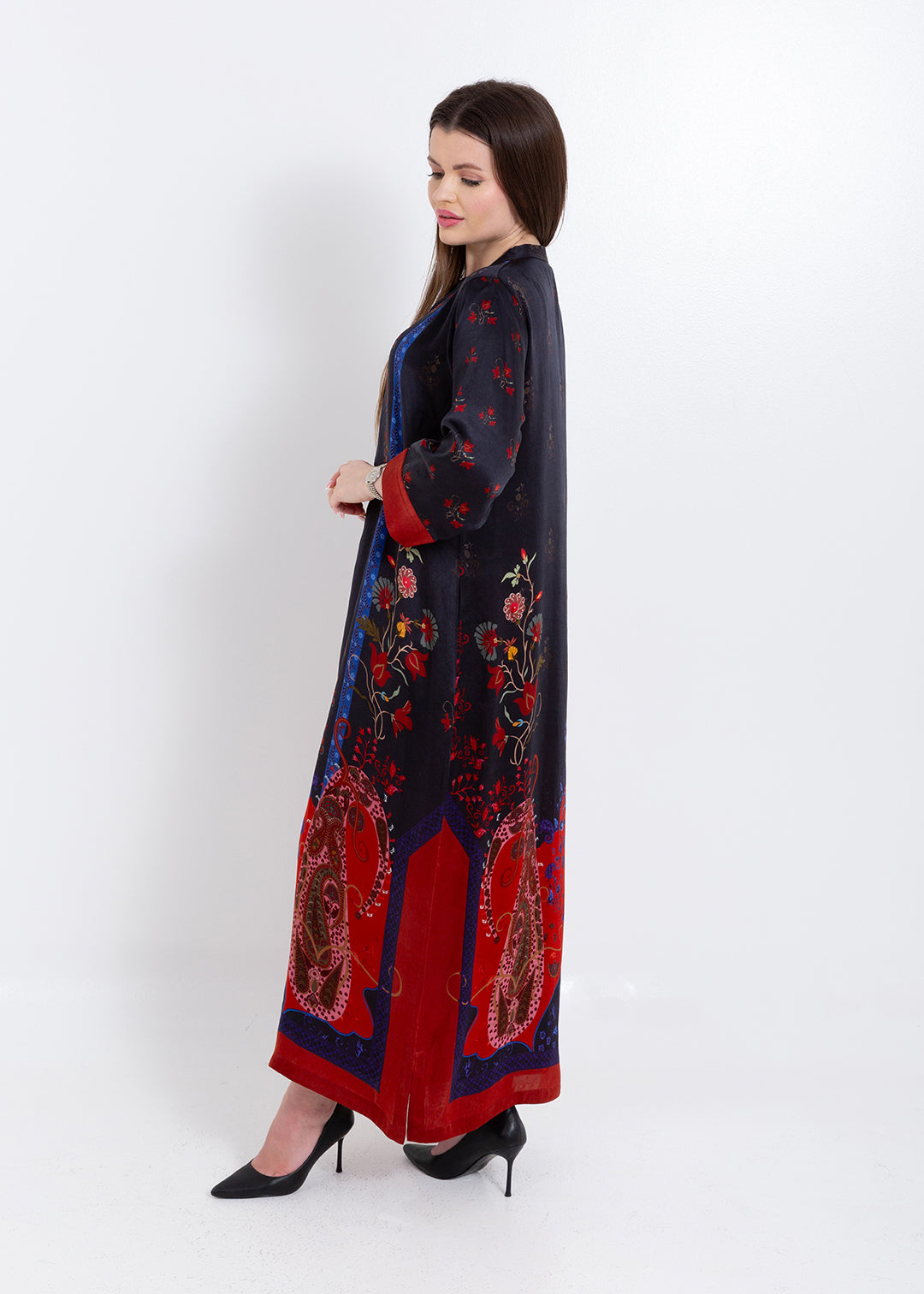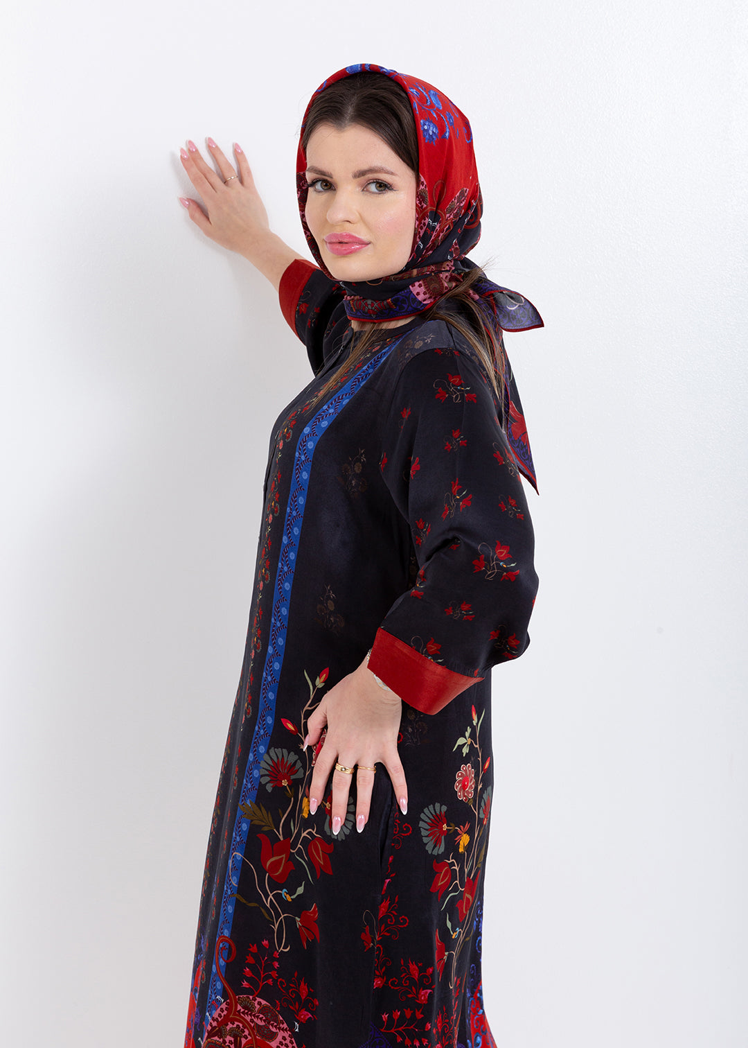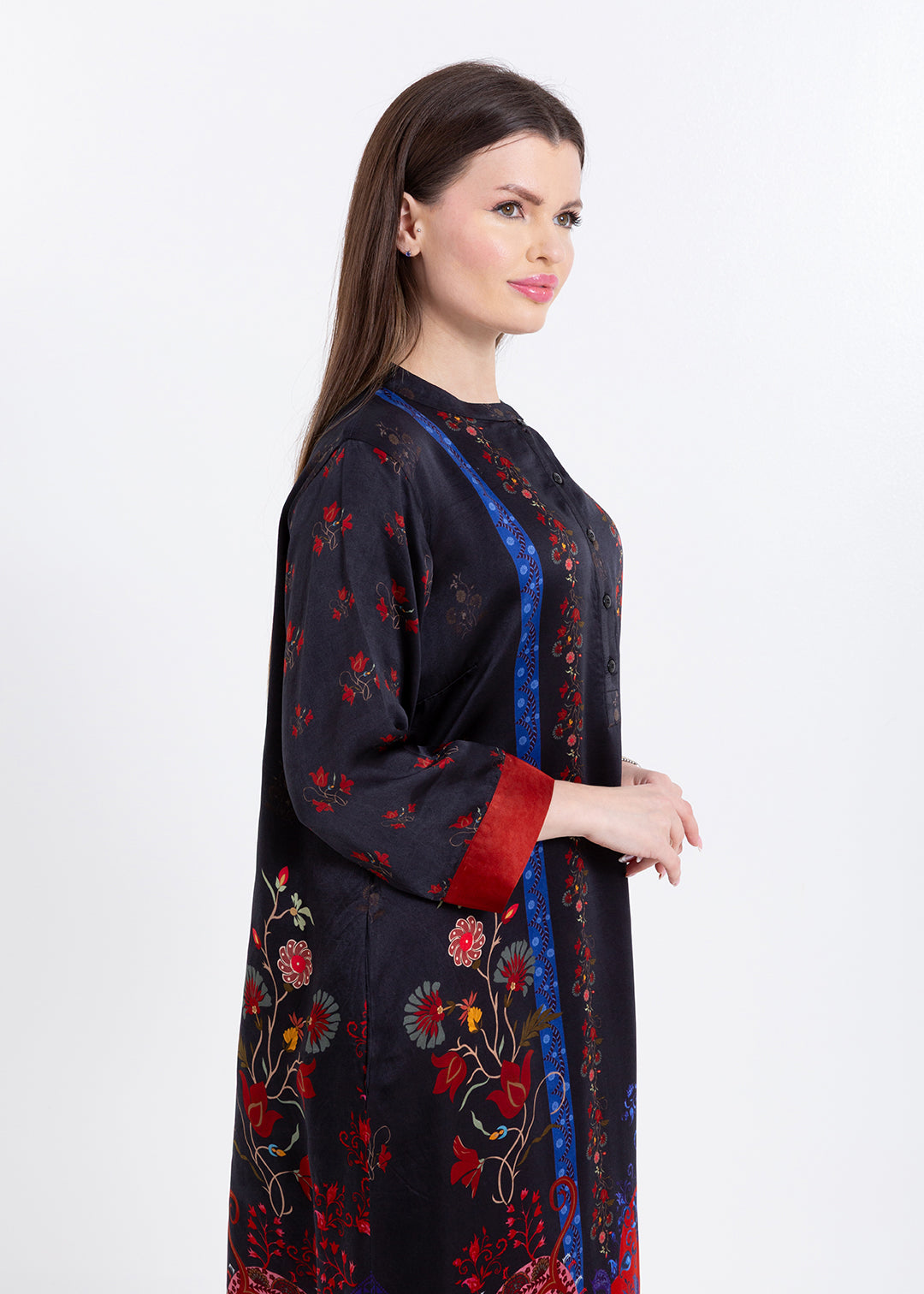 Product Description Elegant with a bold artistic touch, the Riyana Midnight Black Kaftan Set is crafted in luxurious Premium Cupro Satin, offering a...