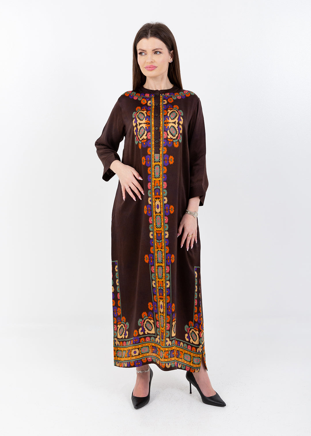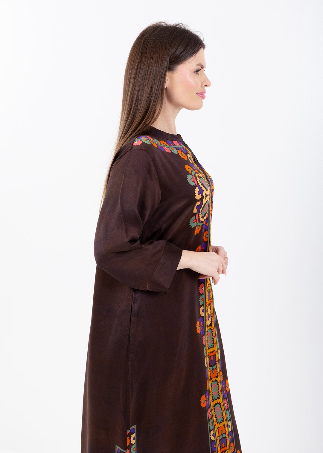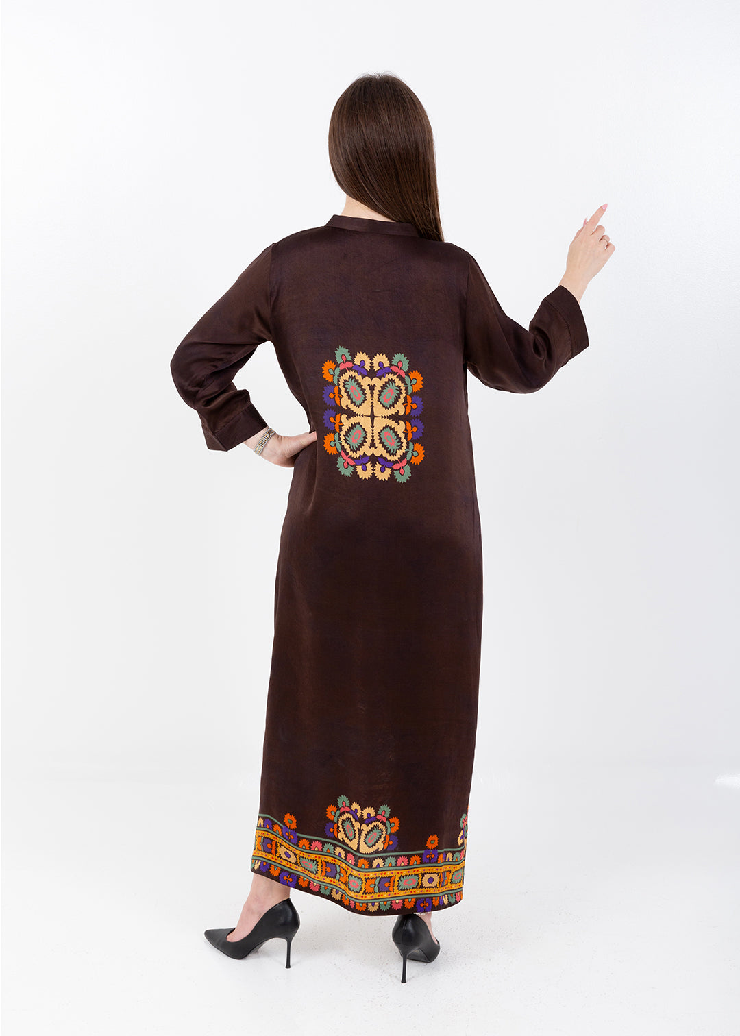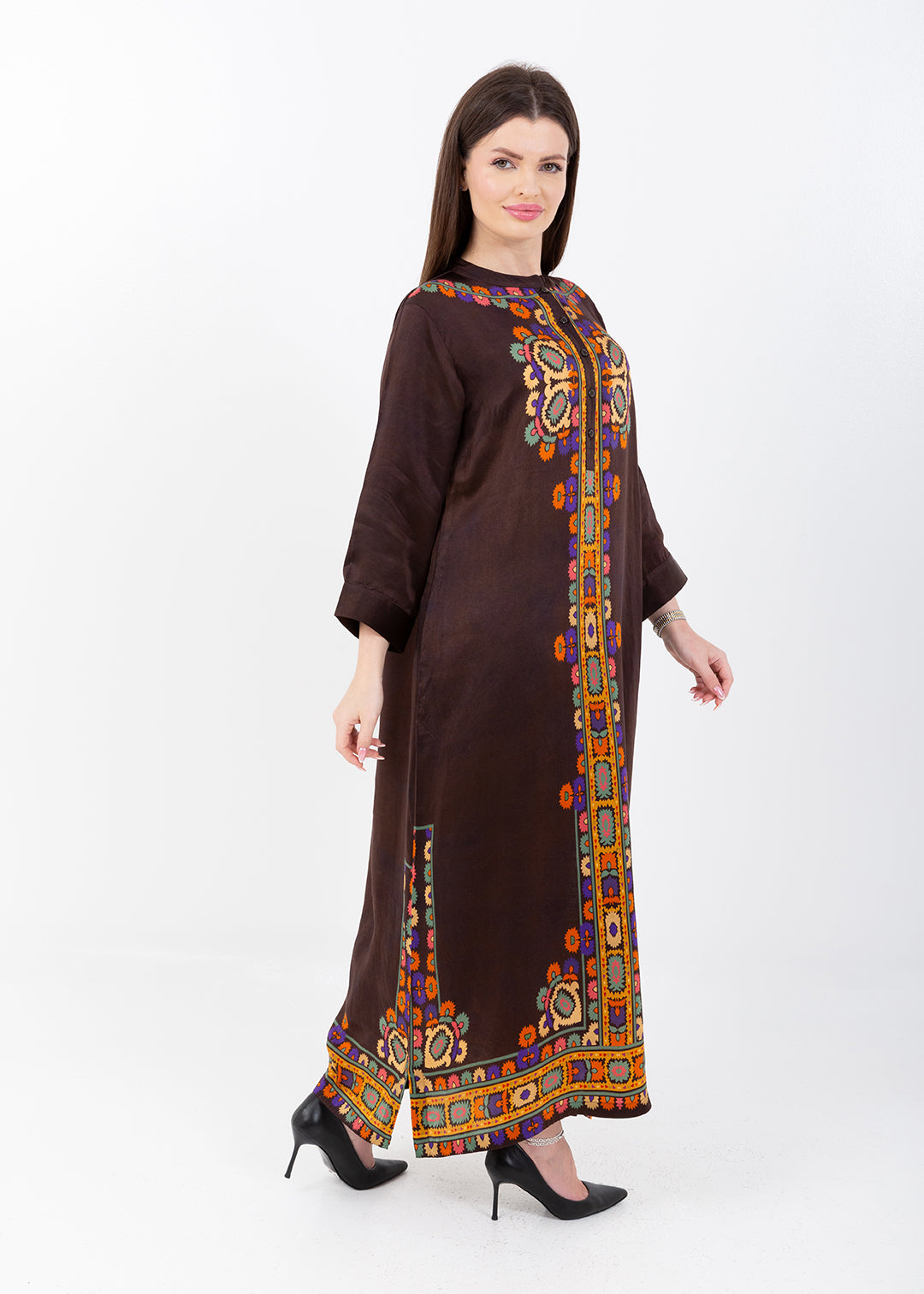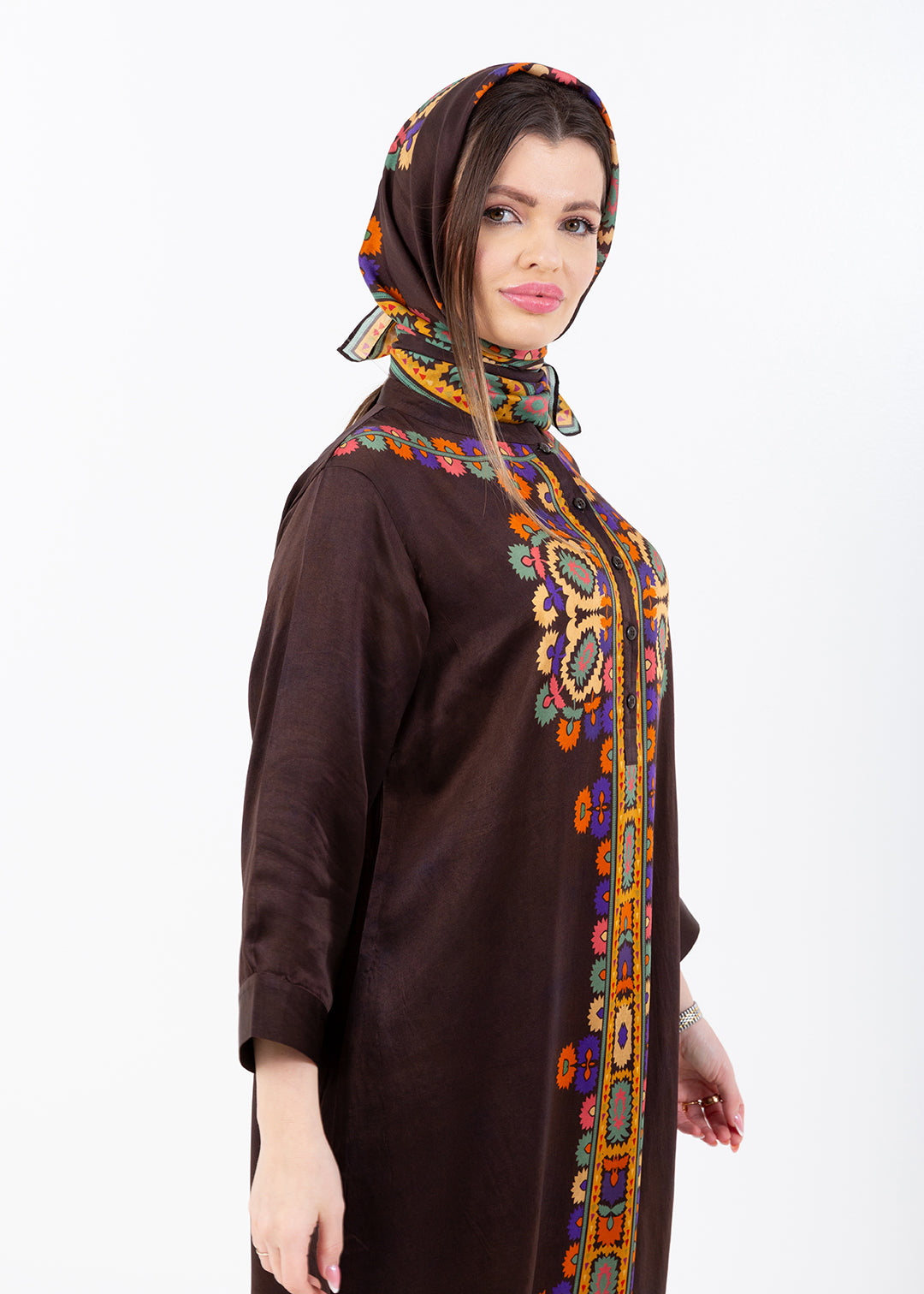 Safiya Deep Brown Cupro Satin Kaftan Set with Matching Scarf