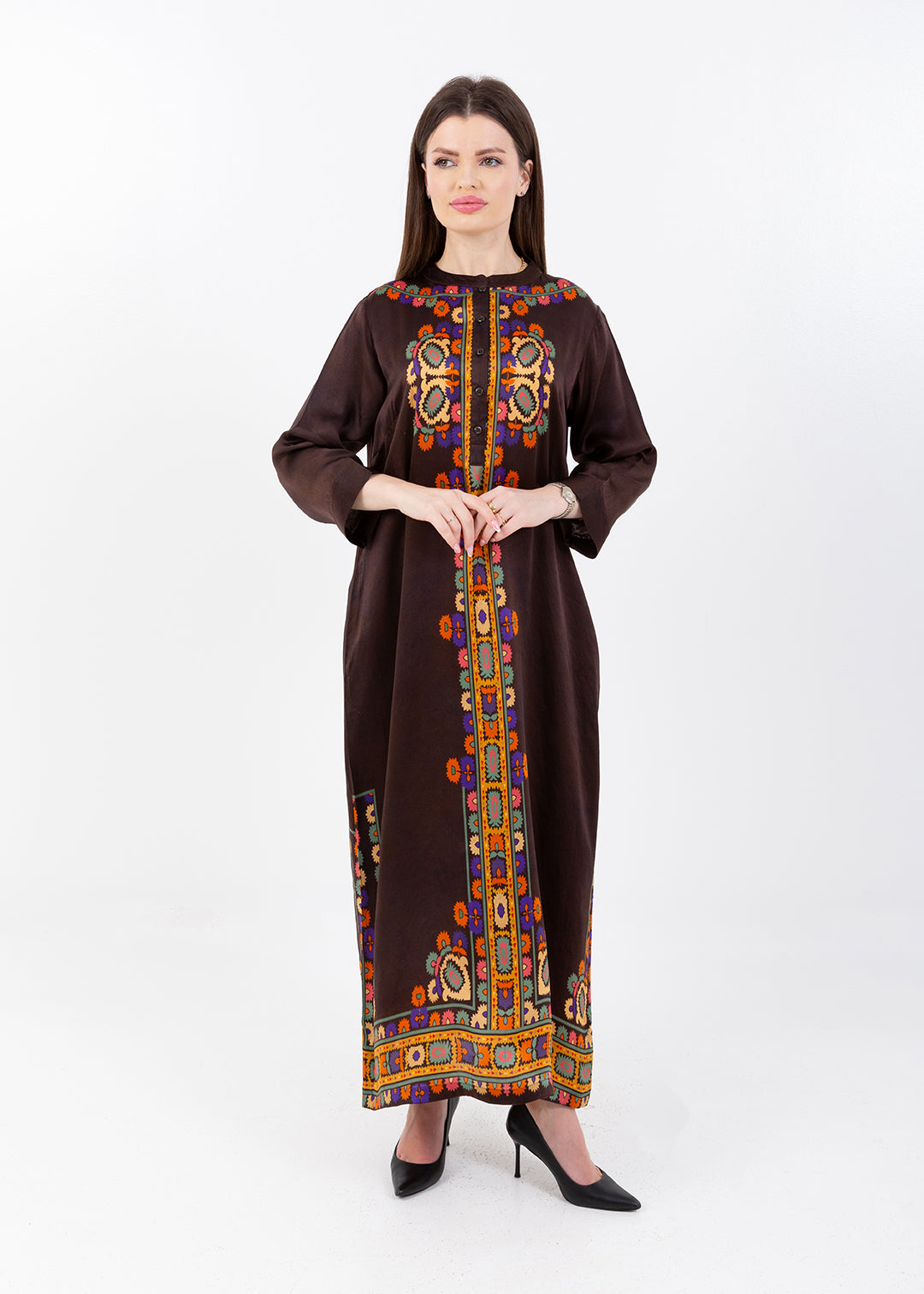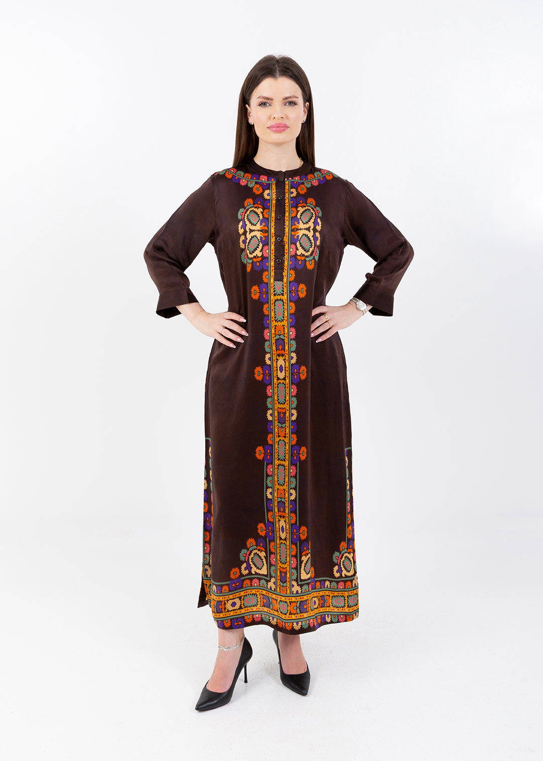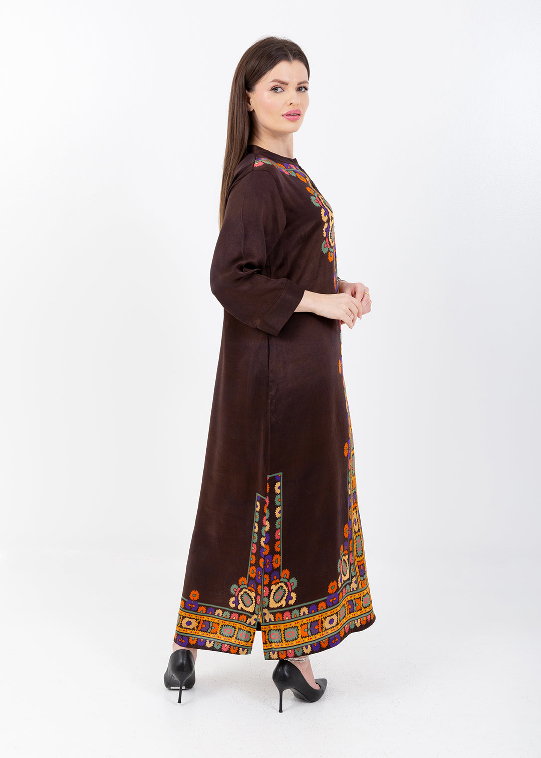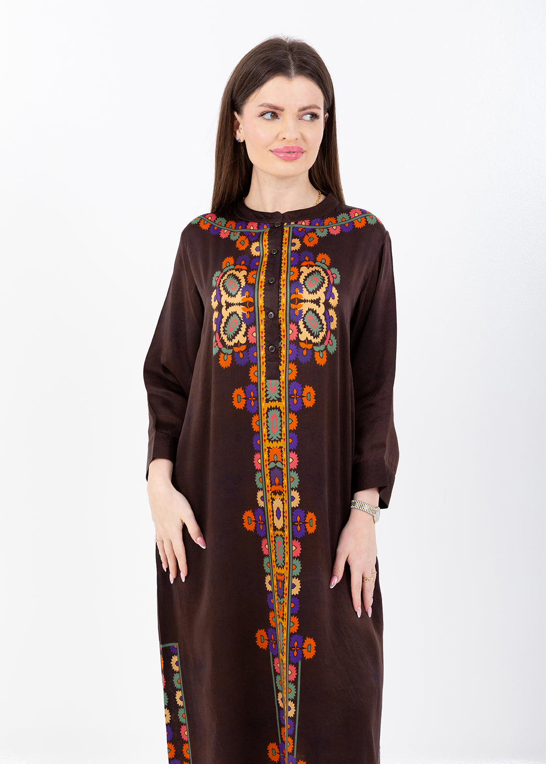 Safiya Deep Brown Cupro Satin Kaftan Set with Matching Scarf
