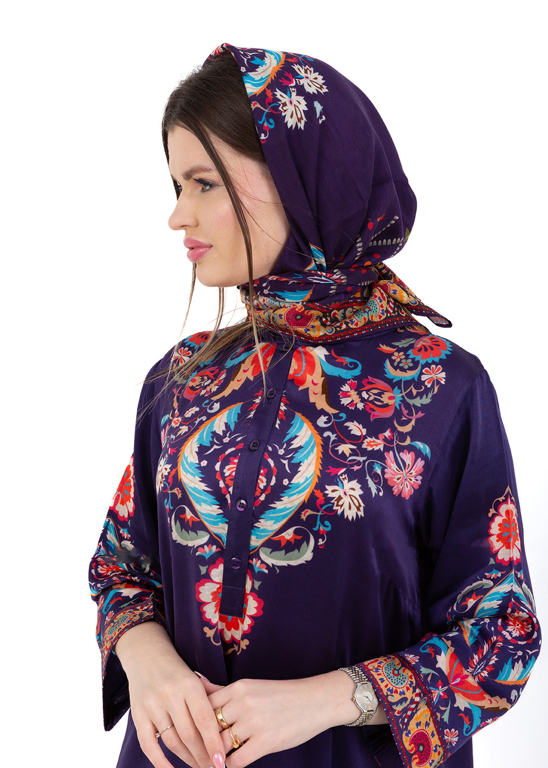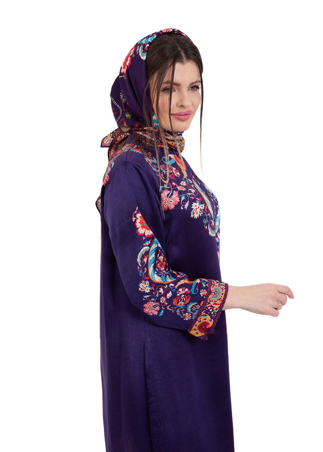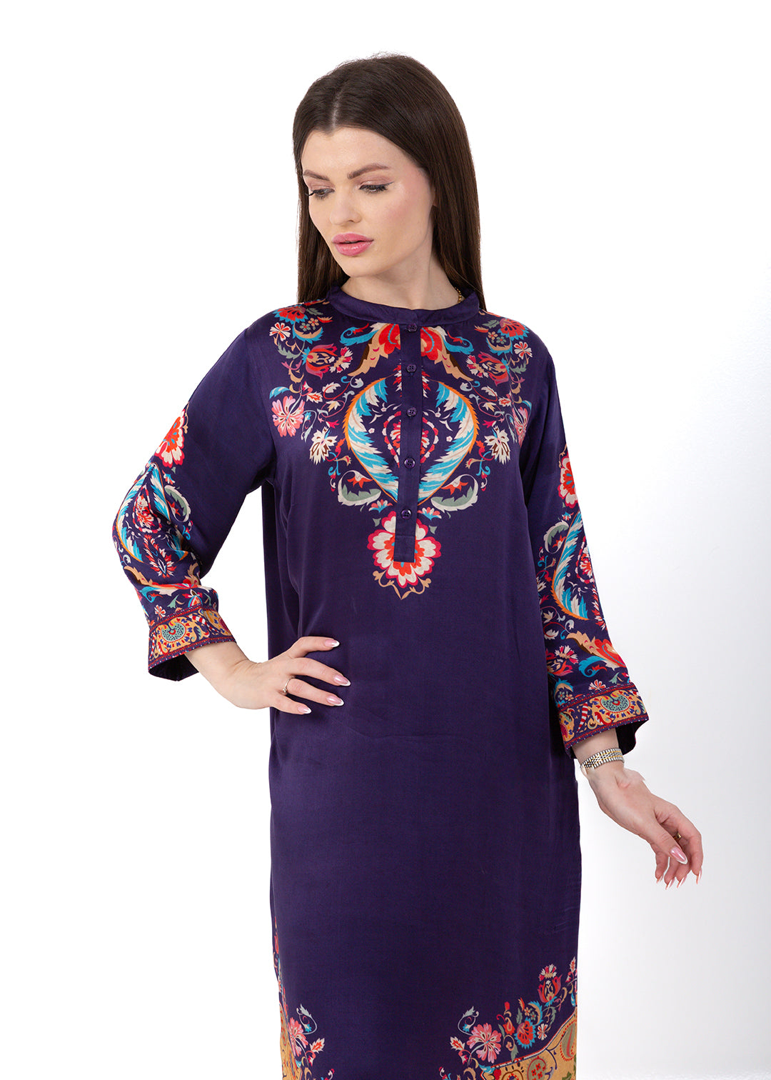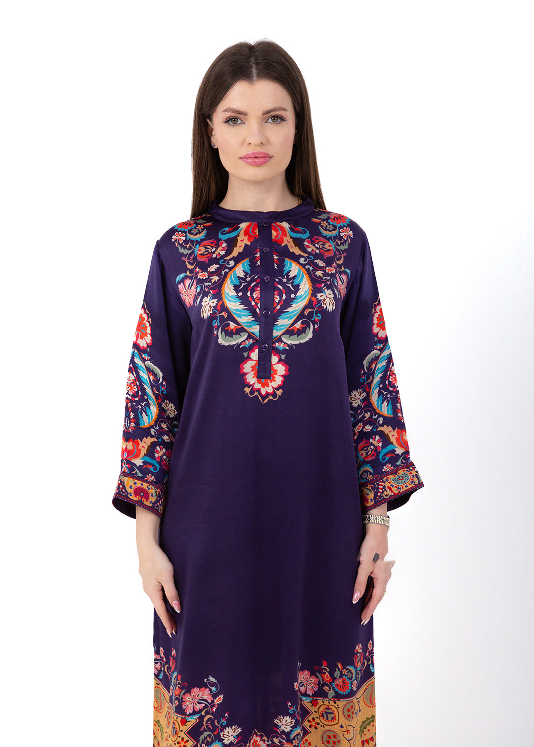 Product Description Bold, elegant, and richly detailed, the Zaria Royal Purple Kaftan Set is crafted from luxurious Premium Cupro Satin, offering a soft,...