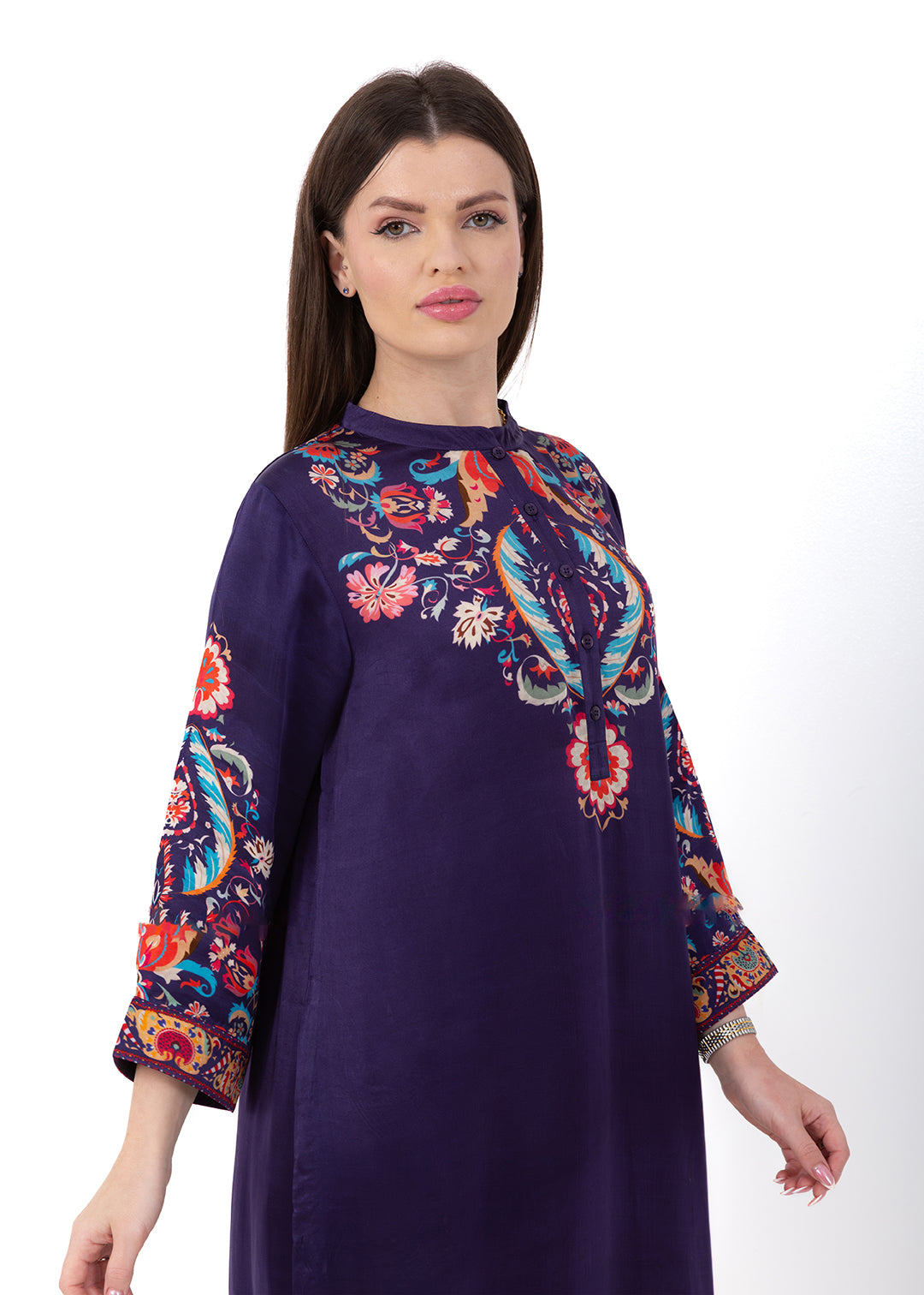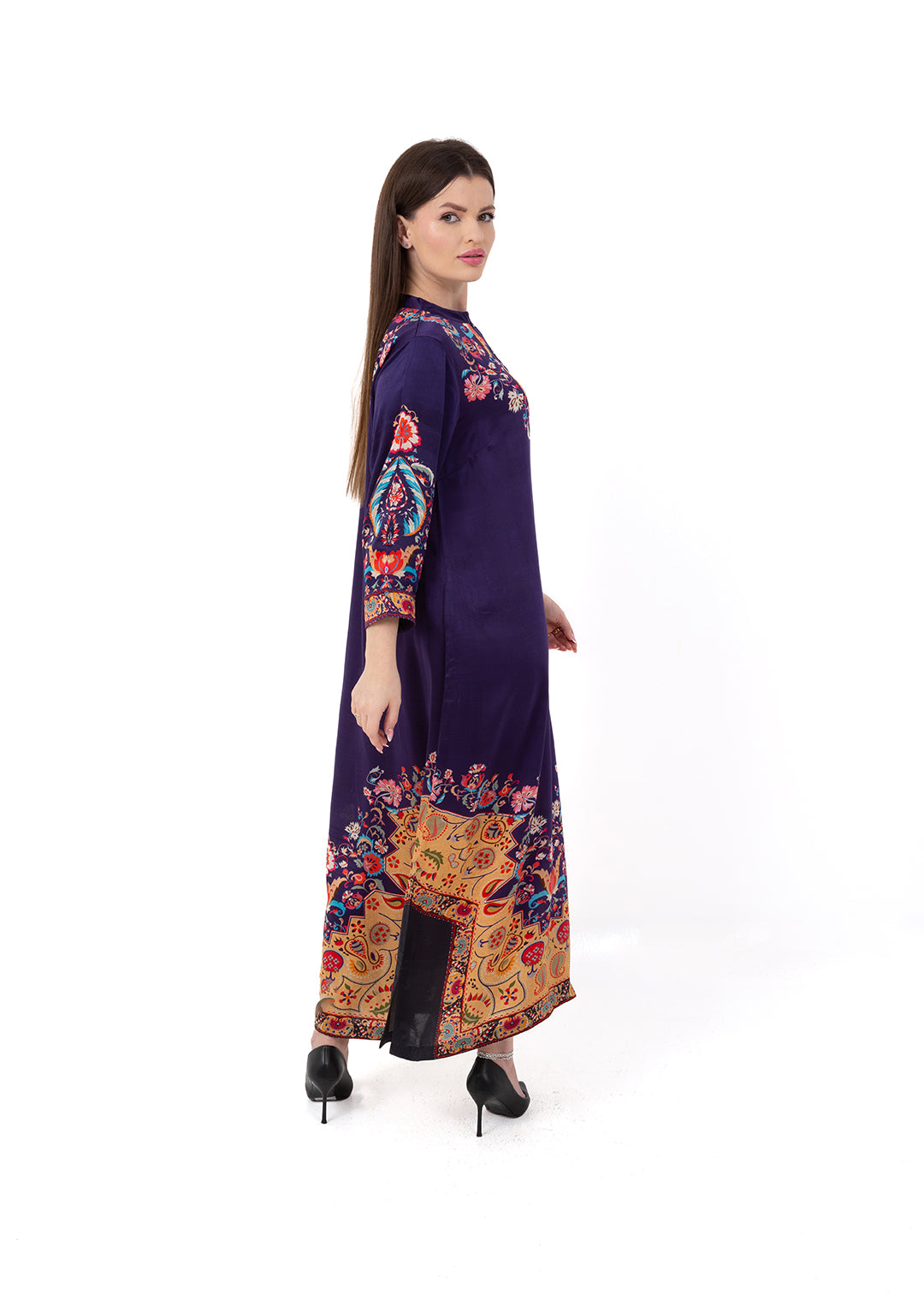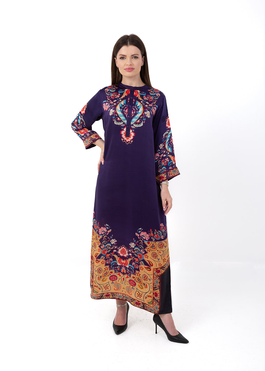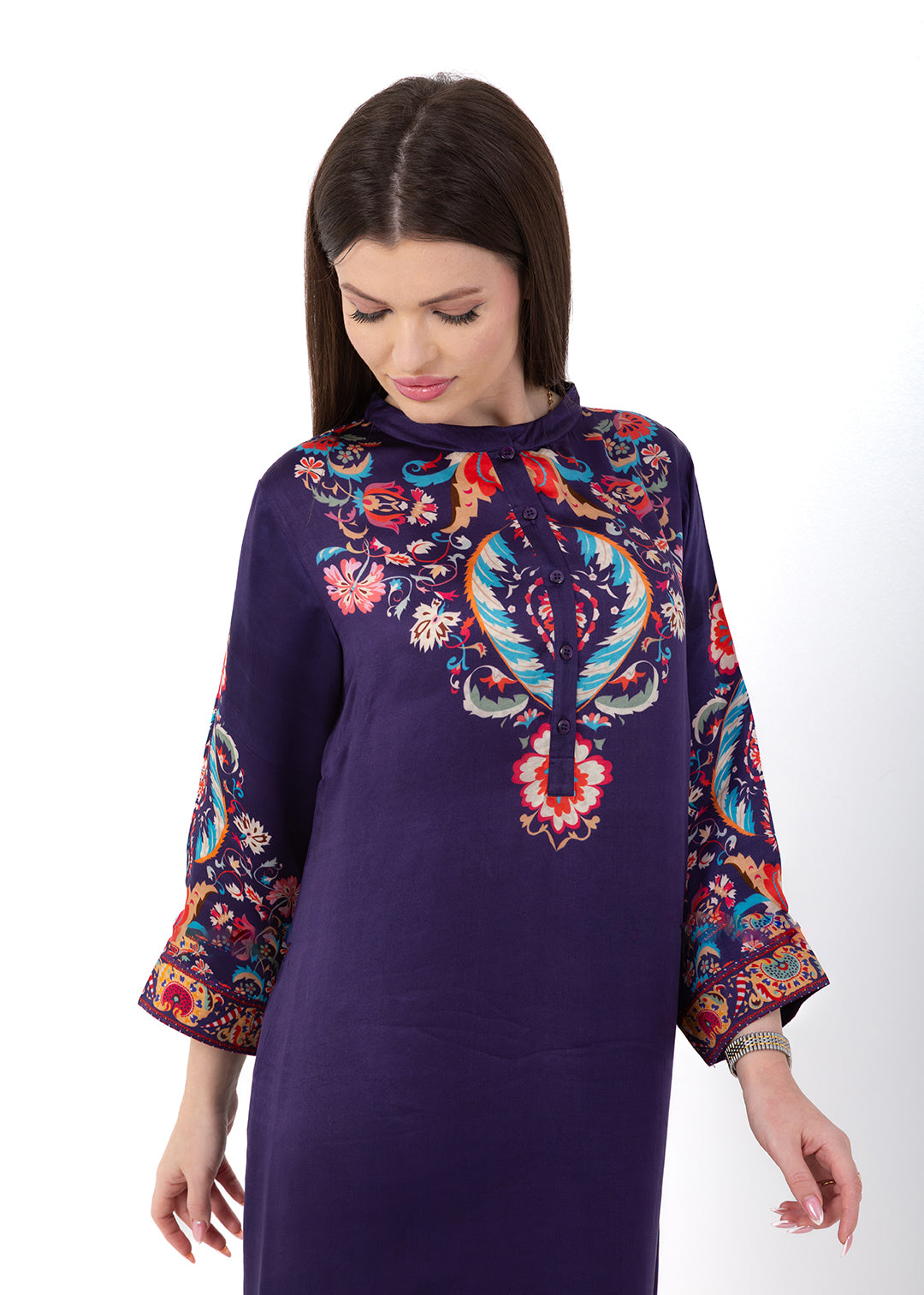 Product Description Bold, elegant, and richly detailed, the Zaria Royal Purple Kaftan Set is crafted from luxurious Premium Cupro Satin, offering a soft,...