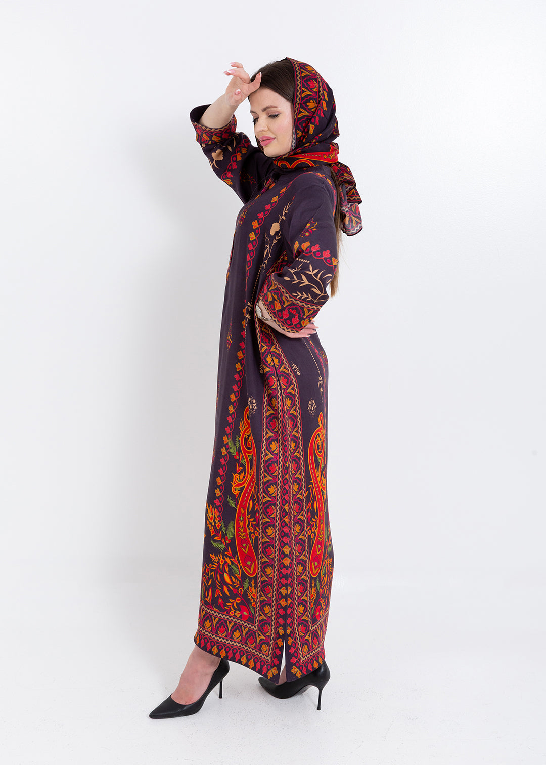 Zivara Wine Plum Cupro Satin Kaftan Set with Matching Scarf