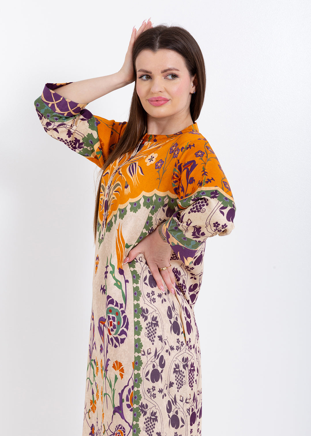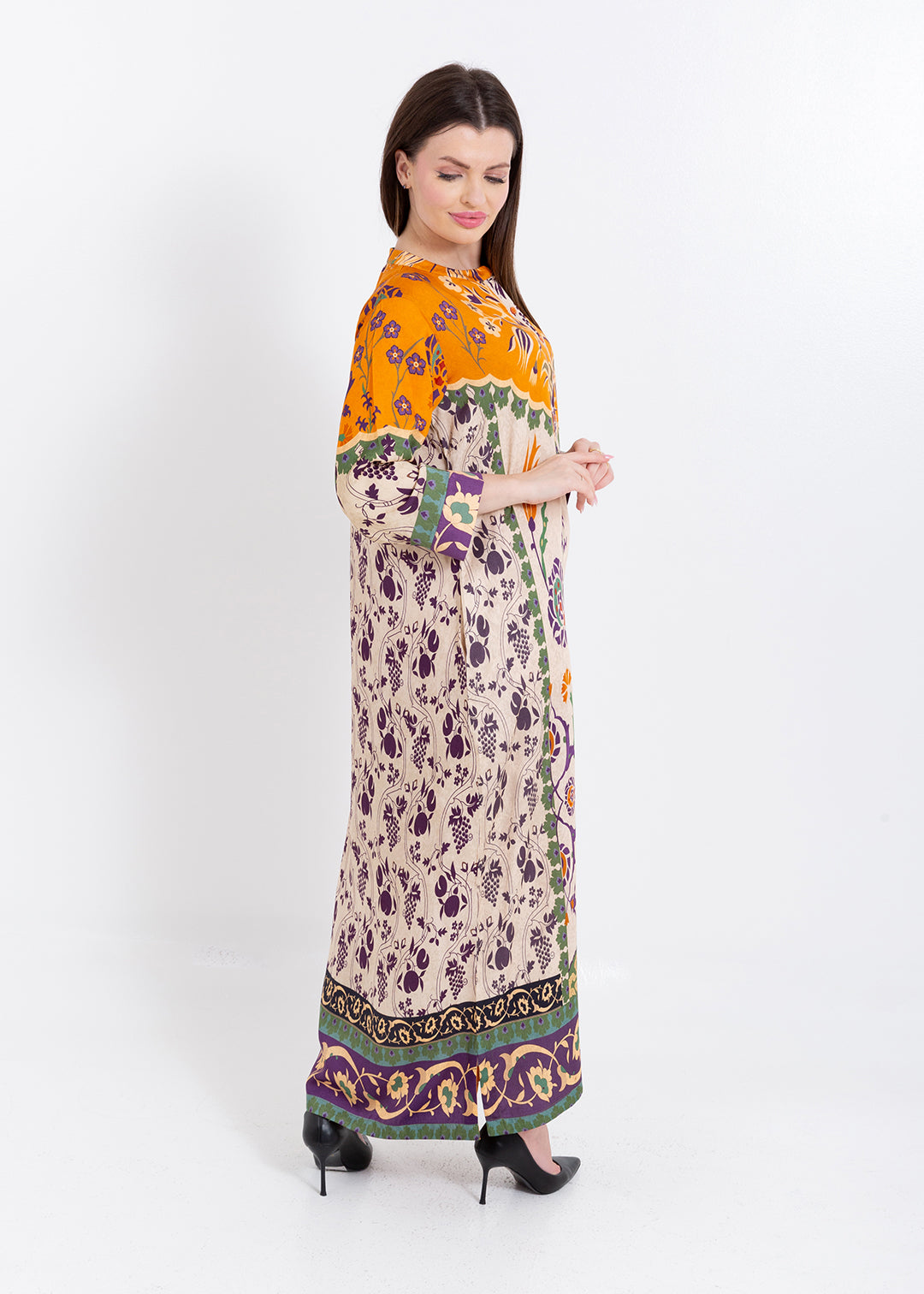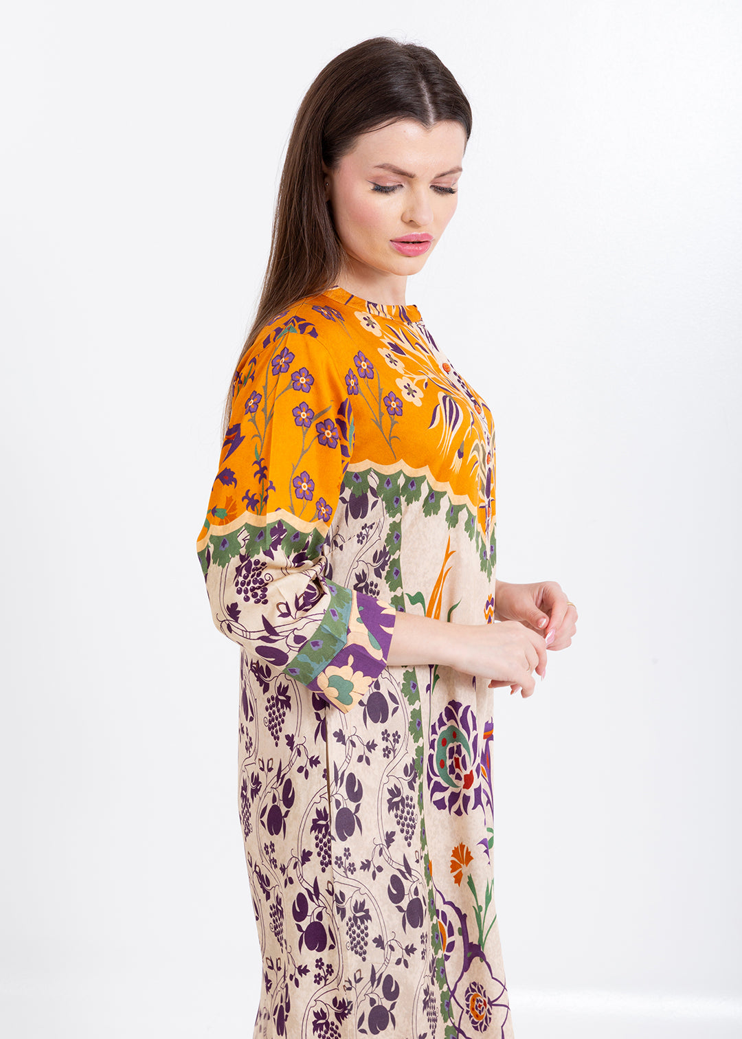 Product Description Elegant and artistically detailed, the Zoya Ivory Amber Kaftan Set is crafted in luxurious Premium Cupro Satin, offering a smooth, breathable...